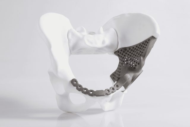외상으로 손상된 골반 부위 복원을 위해 내구성 및 생체적합 소재로 제작 힙니다.