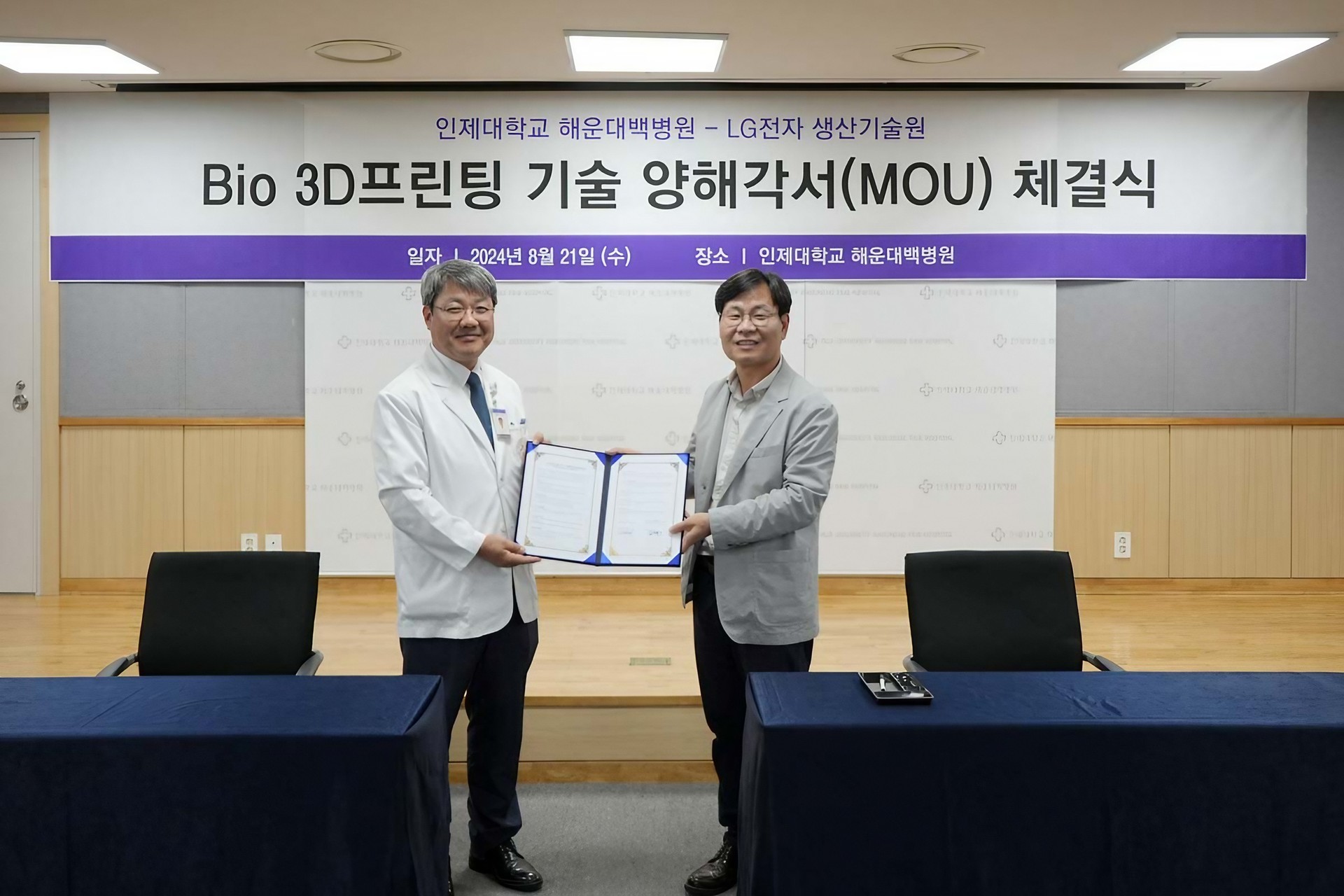 해운대백병원–LG전자, BIO 3D 프린팅 기술 MOU 체결. 맞춤형 의료기기 및 재생의료 기술 개발을 위한 3단계 협력 로드맵 발표.